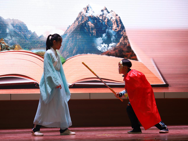 这次活动,各班的代表同学集合大家的智慧,写剧本、制作道具、配音,以小剧场的形式在舞台上为全年级师生表演了《西游记》中的经典故事,如158班的《猪八戒撞天婚》、159班的《二调芭蕉扇》、160班的《车迟国斗法》、161班的《三打白骨精》等,小演员们的表演十分精彩有趣,动作表情滑稽又不失活力。活动的现场精彩纷呈,赢得了师生们一阵又一阵热烈的掌声。极大地激发同学们阅读名著的兴趣。
