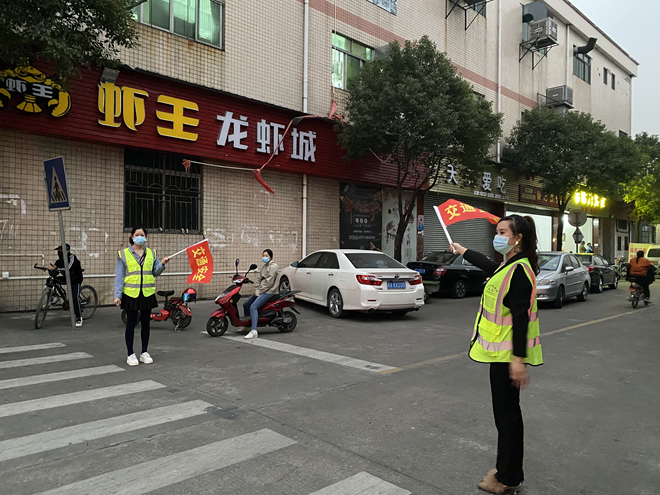 护学志愿者疏导来往车辆
