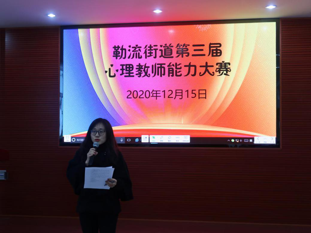 2020年12月15日,勒流街道第三届中小学心理教师专业技能大赛在江义中学,共有来自全街道中小学的17名心理健康学科教师参赛。我校刘倩怡老师获得初中组一等奖。