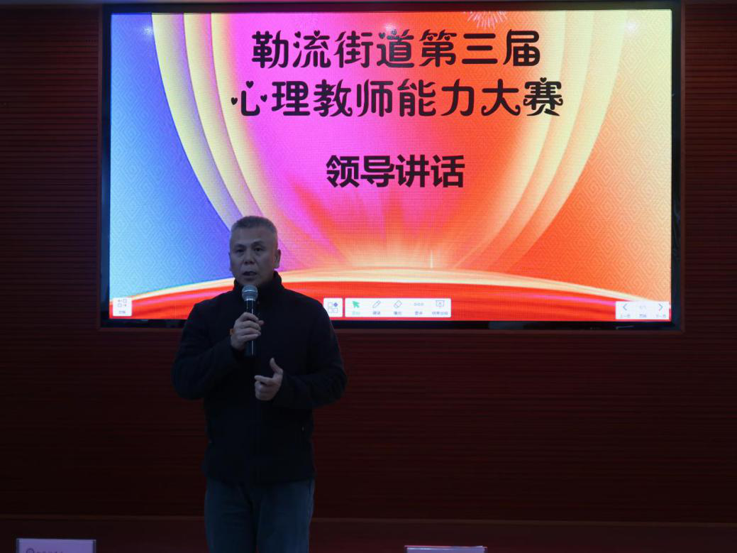 最后,勒流街道德育专干宋庆发老师发表讲话,他肯定了每位选手的付出,对我街道心理教师给予厚望,期望每位心理教师关注自身的身体状态,以更饱满的热情和状态投入心理健康教育工作中。