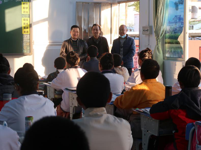 王光书记把西藏部都走了一遍,详细询问西藏班孩子们的学习和生活,听着孩子们欢快的回答,看孩子们灿烂的笑脸,他感到高兴和欣慰。王光书记祝福孩子们在江义中学快乐学习,健康成长,在老师的教导下能够成为对祖国有用的人才。