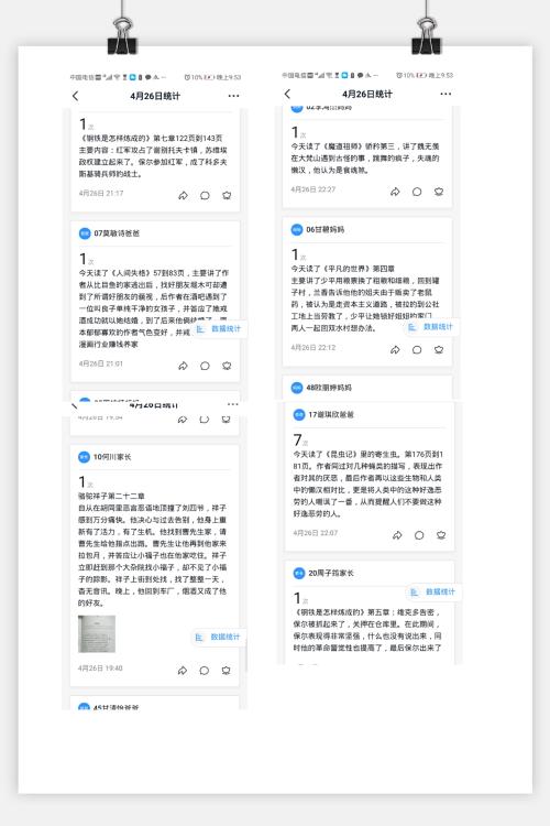 在今年这个特殊的“超长版”假期中,班级打造了一系列实践活动,“网课学习榜样”、“垃圾分类从我做起”、“做一个快乐的读书人――好书推荐”、“特别的您――感恩家人”“给妈妈的三行情书”等主题活动,潜移默化的教育了学生懂得感恩、积极上进。丰富多彩的班级活动,灵活新颖的活动形式,逐渐培养了学生们在参与中学习、进步,使学生的自我认知渐而提升,使学生们在朴素的教育情怀下,用本真的情结潜移默化的成长、进取。