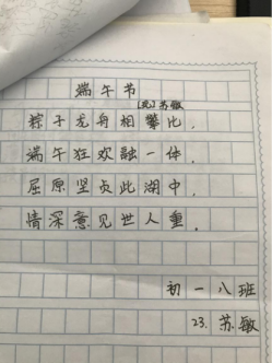 同学们撰写以端午为主题的诗歌,字里行间都展现了同学们对传统节日的热爱,对美好生活的期盼。