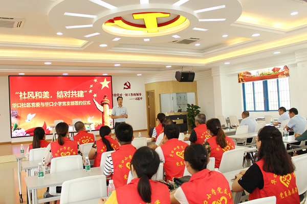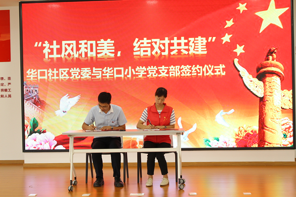 下午,在华口社区党群服务中心,举行华口社区党委与华口小学党支部的党建结对仪式。华口社区书记黄活柏表示,希望通过通过结对共建,使双方党组织互相交流,互相学习,并且能够形成合力共同做好社区服务的工作。