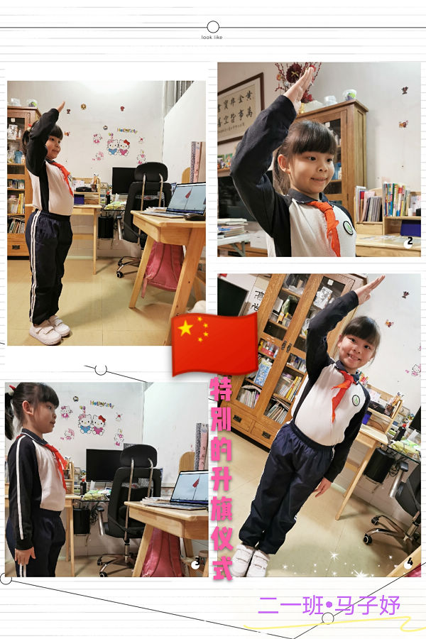 “升国旗、奏唱国歌,敬礼”,鲜艳的五星红旗冉冉升起,奋发的少先队员们敬着标准的队礼,铿锵的国歌奏响在全校师生家里,滚烫的爱国之情在每一位心中升腾.......这一刻,星空体育虽身处不同地方,但星空体育都怀揣着一颗炽热的赤子之心,共同祈愿能早日回归等待了星空体育许久的校园!