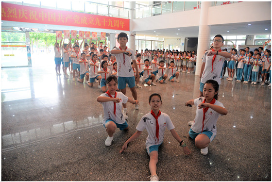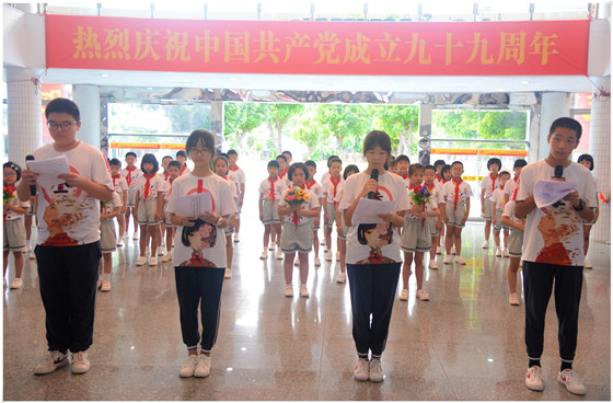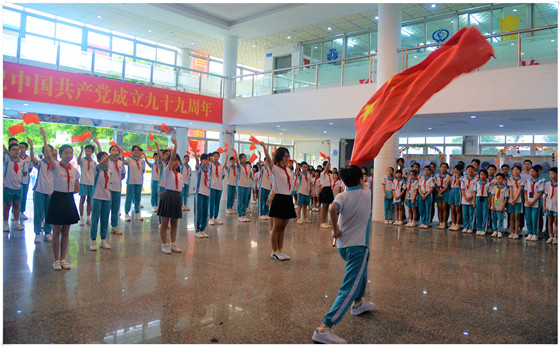 7月1日,值此中国共产党成立99周年之际,顺德一中教育集团容桂实验学校举行“庆祝建党99周年”活动。活动由叶明胜老师主持,中小学部四至七年级师生以歌舞和诵读的形式献礼祖国,讴歌时代新生活。