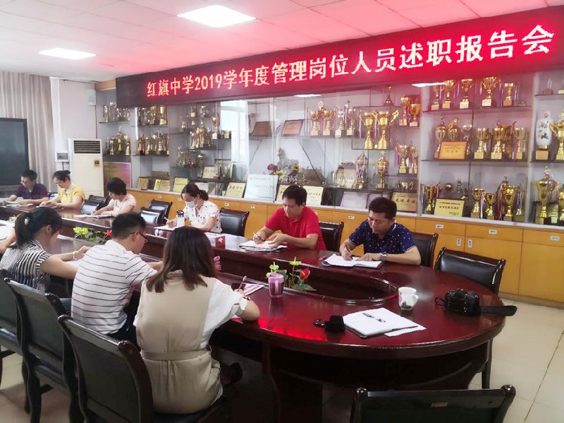 中层岗位管理人员是学校凝聚教职工力量的核心,是学校决策得以推进和落实的重要环节和有力保证。为全面、客观、公正地反映学校中层人员的政治业务素质和履行岗位职责情况,同时督促学校中层岗位人员成为有思想、有担当、会干事、能干事的人。6月30日和7月10日两天上午,红旗中学举行了中层岗位人员述职大会。全体行政、各部门负责人出席会议。