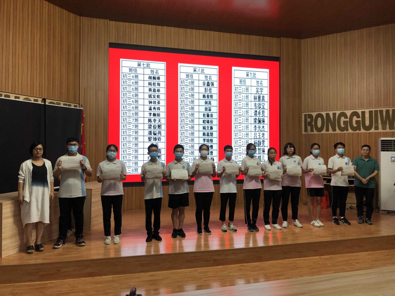 “向优秀榜样学习”――容桂外国语学校召开初三优秀学生表彰大会