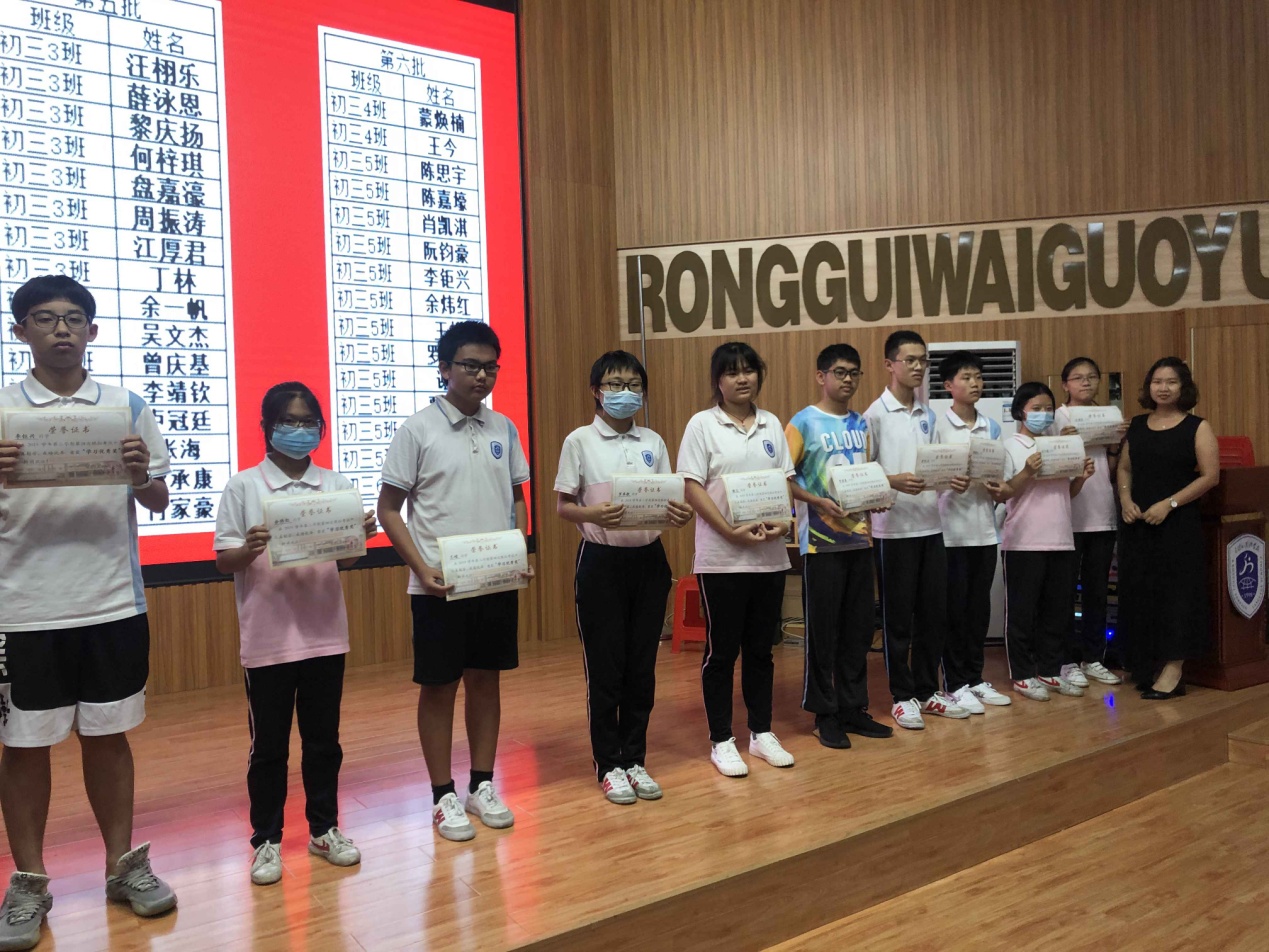 7月1日下午,容外初三年级在电教馆隆重召开了优秀学生表彰大会,对顺德区模拟考试中成绩优异及进步明显的学生进行颁奖。这既是对优秀学生代表学习成果的肯定,也为其他同学树立了优秀的榜样。在距离中考仅剩的20天里,激励全体学生努力拼搏,再创佳绩!