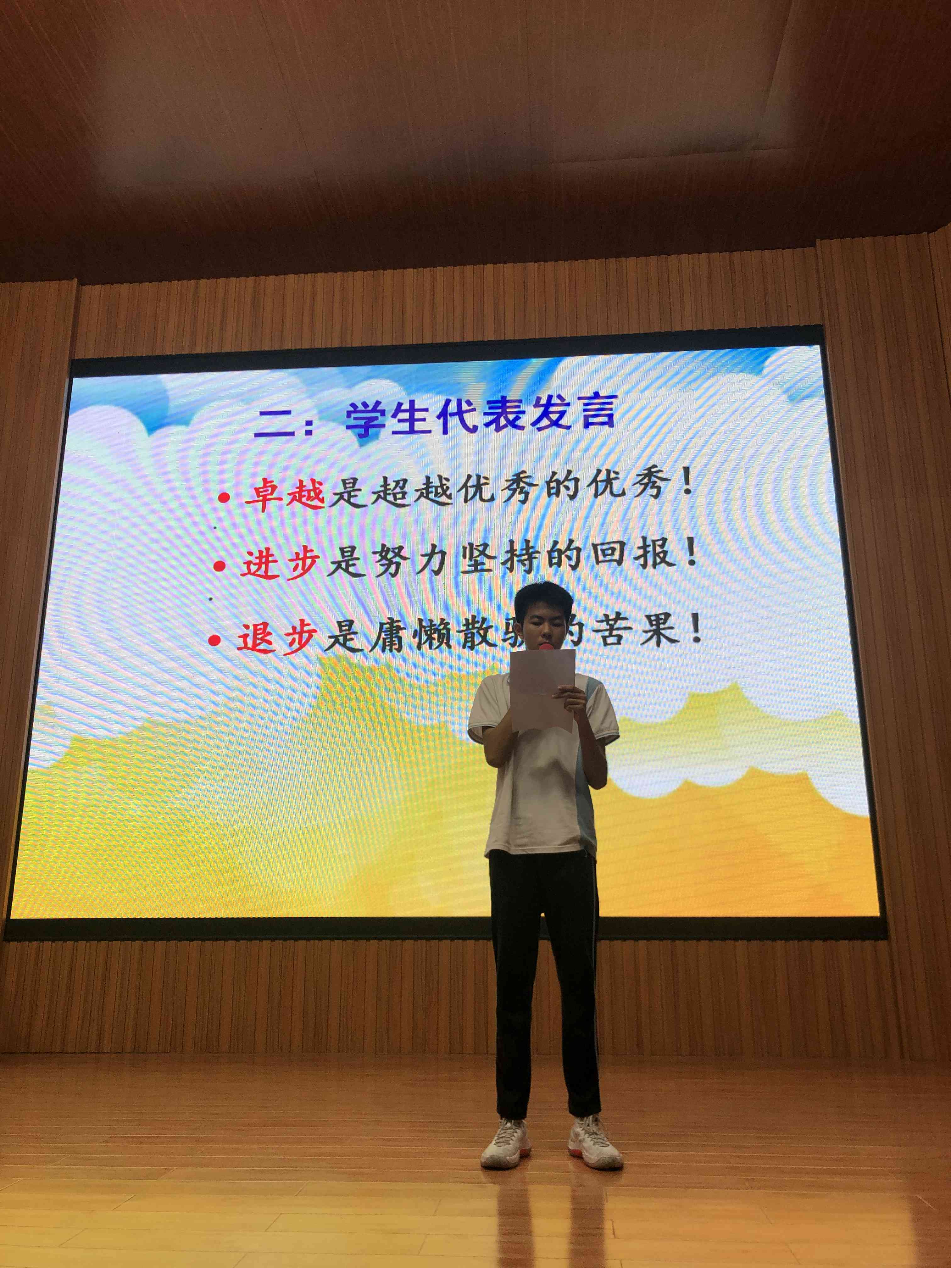 颁奖结束,由周文杰副主任发言,他首先向受到表彰的同学表示热烈的祝贺,肯定他们优异成绩的同时,更坚信以他们的实力与水准。保持不骄不躁的态度,必定会在此次中考创造更大的奇迹!拼搏七月,奋进全力,舍我其谁,容外必胜!