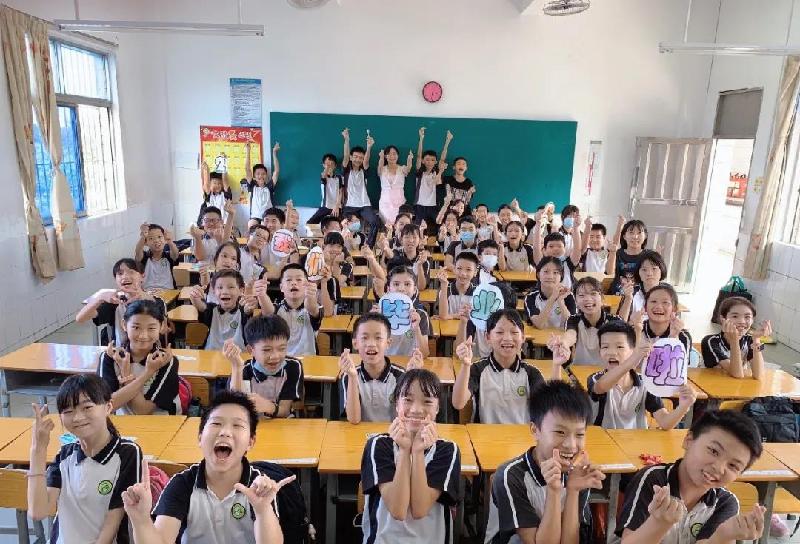 一至五年级的弟弟妹妹以六年级的哥哥姐姐为榜样,爱学校、爱老师、爱学习、爱同学,不断成长,不断进步。