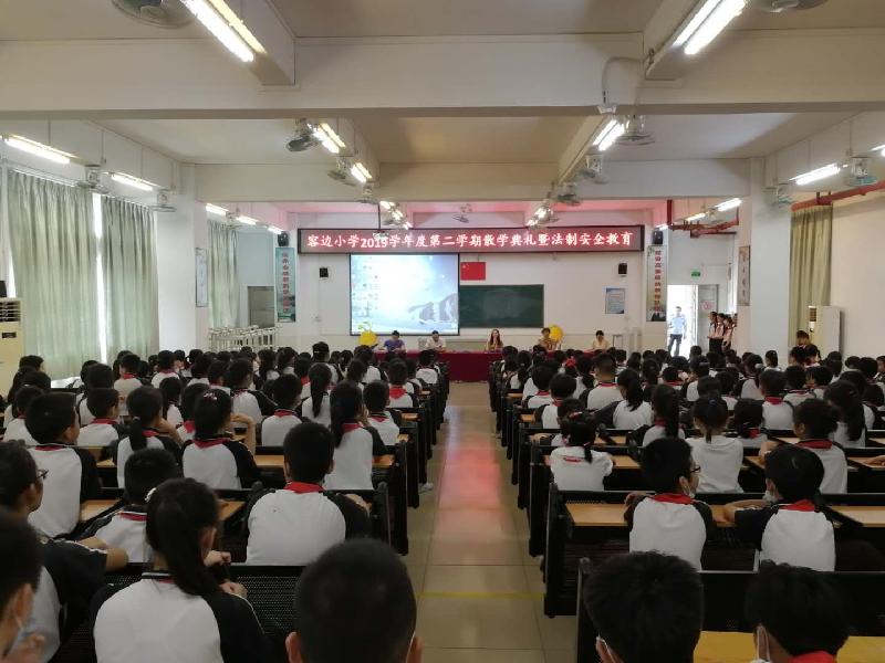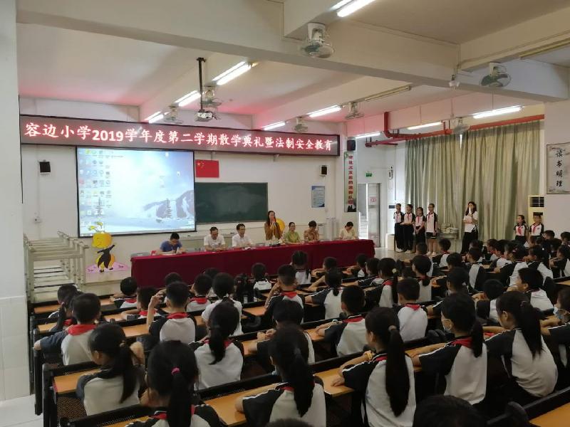 7月17日下午,容边小学在学校电教室举行“2019学年度第二学期散学典礼暨法制安全教育”活动。学校的全体行政、驻校法制校长傅勇警官、各班学生代表等参加了典礼活动。