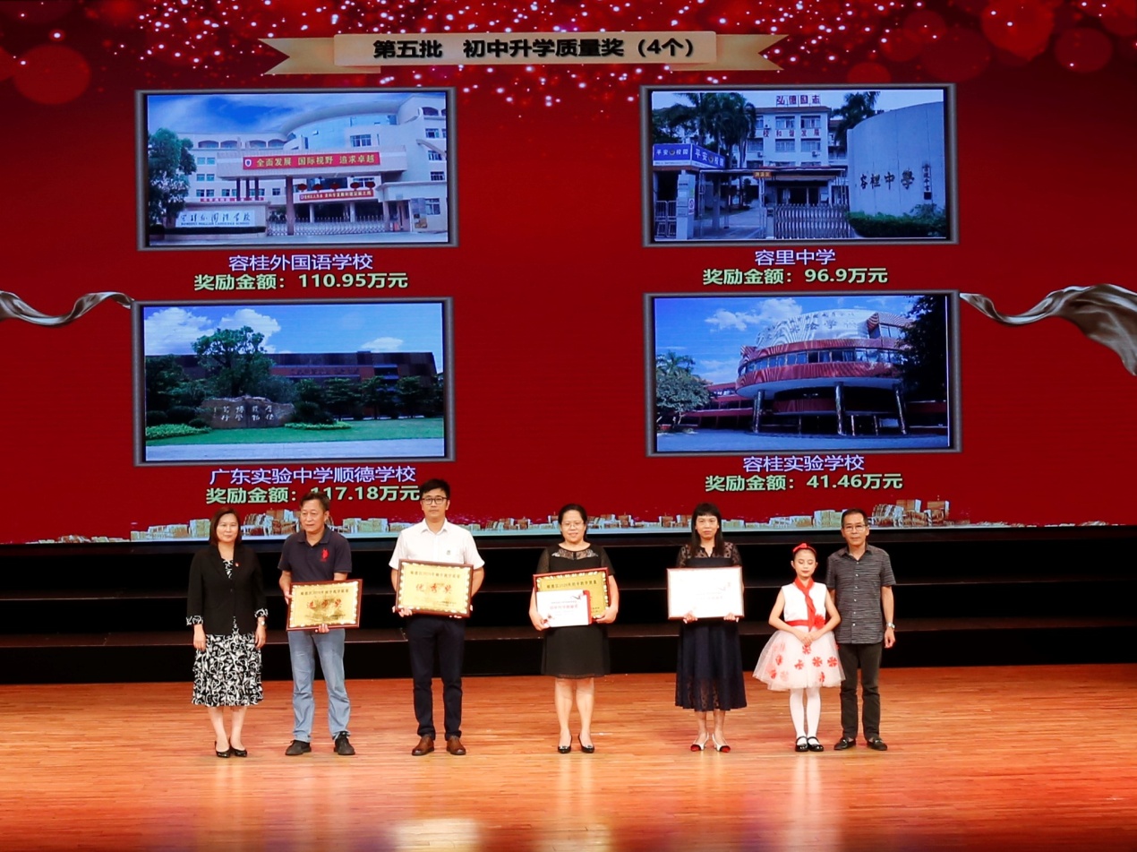 容桂外国语学校荣获顺德区“初中教学质量优秀奖”