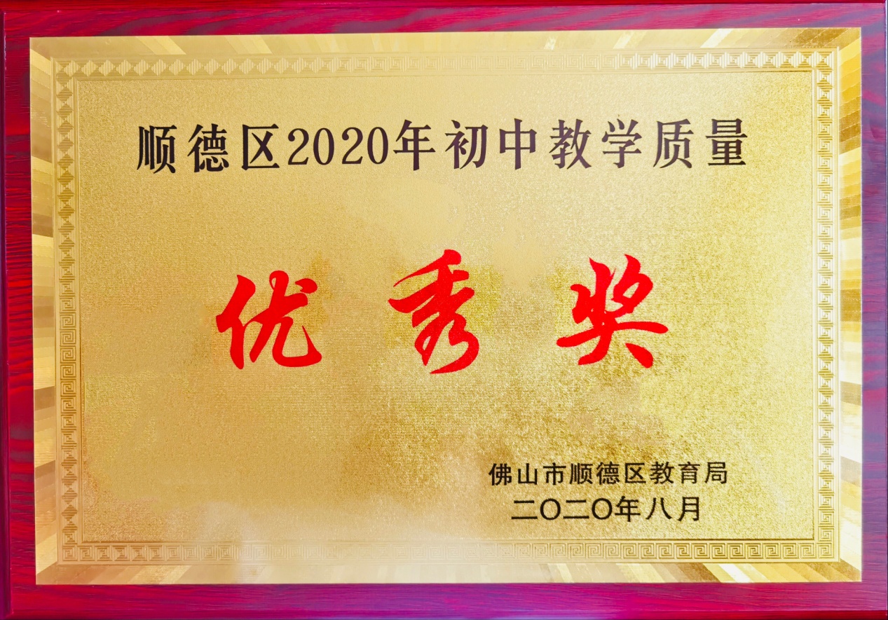 在过去一个学年以来,我校全体教职员工在“全面发展野 追求卓越”理念的引领下,围绕“努力把容桂外国语学校建设成为顺德优质,佛山地区有一定影响,充满活力的特色学校;努力打造一支‘合格+风格’的教师队伍;努力培养一批‘合格+特长’的学生”的目标不断奋斗,办学质量不断提高,成绩斐然。学期伊始,喜报频传,继2019年后,再一次荣获“顺德区2020年初中教学质量优秀奖”!