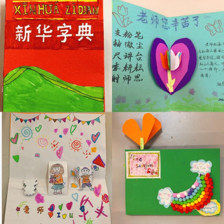 “张张贺卡传真情,句句祝福暖师心”,活动的最后,各年级的优秀贺卡制作者到舞台上展示他们的精美贺卡。他们利用周末亲手制作,花式多样,极具创造力,小小的贺卡附上了他们浓浓的谢意,并在这个特殊的节日送给了自己喜欢的老师们。