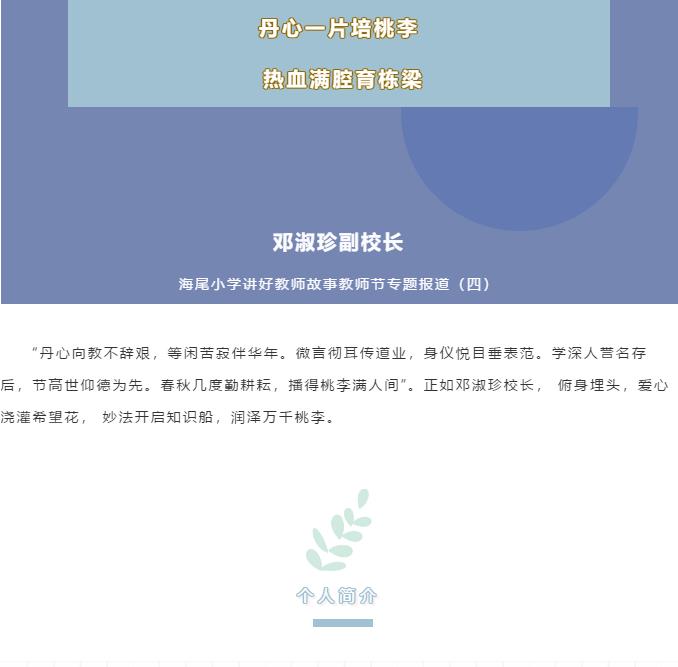 丹心一片培桃李 热血满腔育栋梁(邓淑珍副校长)――海尾小学讲好教师故事教师节专题报道