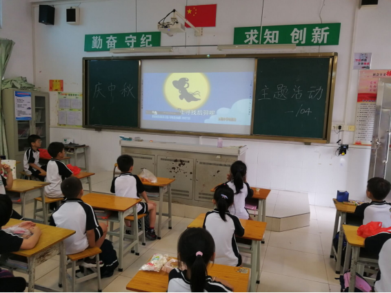 一年级的小朋友认真听着老师讲授中秋神话传说、中秋民俗故事,孩子们聚精会神地盯着老师,时而眨眨眼、时而抿抿嘴,仿佛自己也要飞到月亮上去了。还以咏月盼月为主题,多种形式读小诗,唱歌谣,欢声笑语洋溢在温馨的教室里。