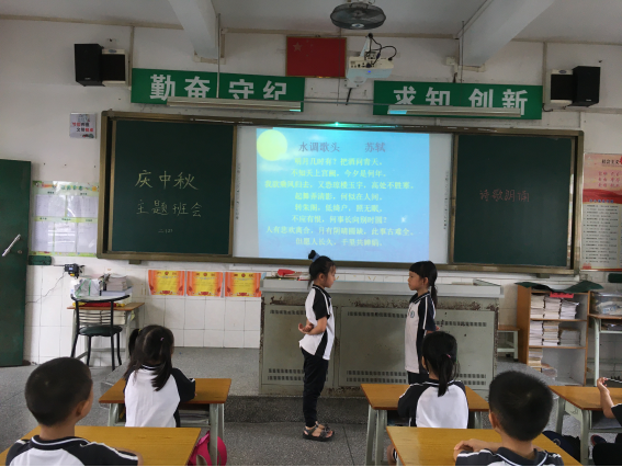 二年级的同学也在用不同的形式表达着欢庆中秋的喜悦之情和对祖国传统文化的热爱。各班利用班队课的时间,猜谜语、讲故事、吟古诗……孩子们积极踊跃参与活动,感受到了浓浓的节日氛围。
