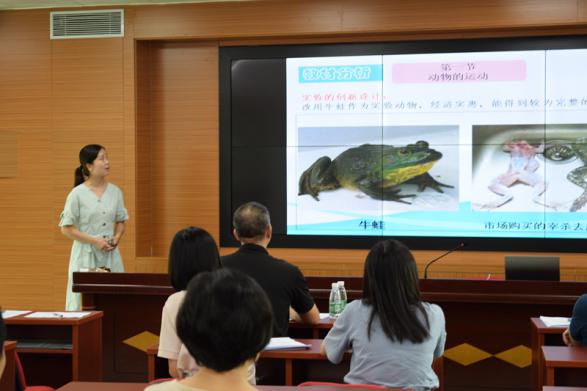 来自容桂外国语学校的邓欣欣老师,说课题目为八年级上册的《探秘牛蛙的运动系统的组成》,说课过程充满激情,通过创设多个教学情境和丰富多彩的活动,激发学生的探究欲望。
