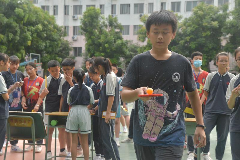 滑溜溜的乒乓球和玻璃珠总是不受控制的掉落,让参与者甚是懊恼。围观的同学则屏息凝视,生怕干扰了比赛结果。