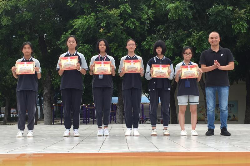 在比赛开始之前,体育科何嘉政老师对比赛规则进行讲解。各班分为男子组和女子组,每组由11人组成。根据事先训练和抽签的顺序,第一场比赛由女子组1班、2班和3班上场,第二场比赛是女子组4班、5班和6班。哨声响起,各班参赛队员奋力前冲,经过一番角逐,3班的女同学步调一致,健步如飞,势如破竹,用最短的时间获得了女子组冠军。
