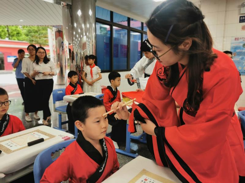 许勇辉校长放下鼓椎,目光深远地望着眼前这群童蒙稚子,眼里满是期许,心里满是豪情。是的,为了帮助新生上好人生第一课,写好人生第一笔,学校特意在孔子诞辰日开展活动。