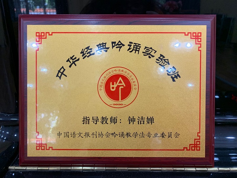 近期,经过专家推荐评选,小黄圃小学钟洁婵老师所带的班级被中国语文报刊协会吟诵教学法专业委员会授予“中华经典吟诵实验班”。旨在采取吟诵的方式,引导学生积累经典诗词,传扬中华优秀文化。学校在全面推进国家基础课程的优化实施,全面提高教育教学品质,取得了良好的办学效果。