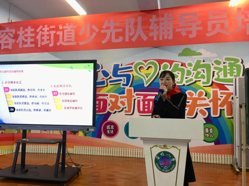 12月31日下午,温暖的冬阳驱散了凛冽的寒潮,鲜艳的红领巾飞扬在美丽的校园。容桂街道少先队辅导员培训活动在容桂小学顺利举行,参加活动的领导和嘉宾有佛山市少工委中心组副组长、容桂小学少工委主任杨柳春校长,顺德区德育兼职教研员、容桂街道德育中心教研组组长麦然 ,容桂街道德育中心教研组副组长、幸福小学副校长李丽,顺德区德育兼职教研员、容桂小学副校长郭玲,容桂小学德育主任李海红以及容桂街道各学校的大、中队辅导员。活动由容桂小学德育主任罗瑞琪主持。