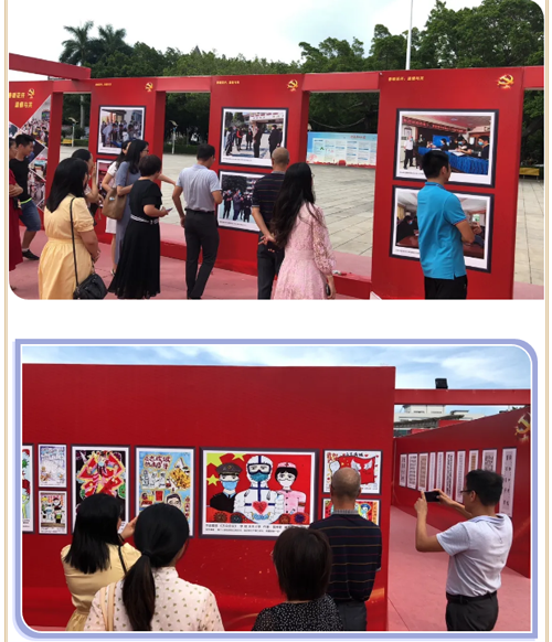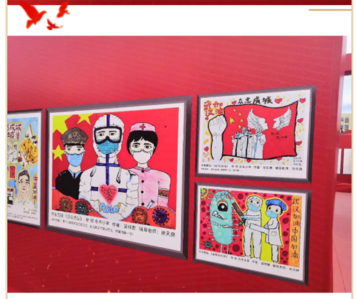 永丰小学党支部书记吴凡组织全体党员来到了展览区,一起参观了抗疫工作剪影、抗疫英雄剪影和师生的抗疫主题书画。偌大的展区,向大家传达着战胜疫情的坚定信念和顽强斗志。