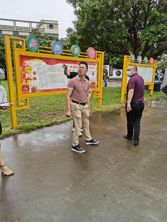 2020年8月12日,顺德区创文检查组莅临细 小学督导创文工作,细 小学李凤美校长带领行政迎接创文组的督导。
