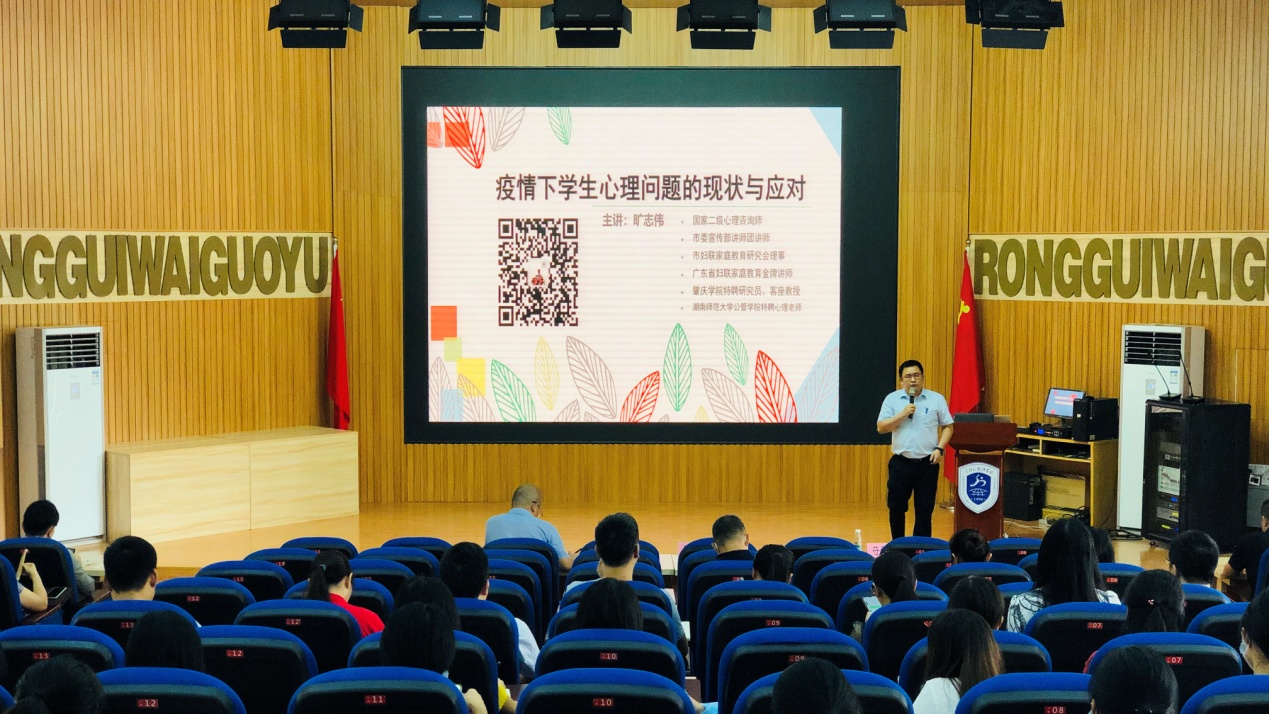 街道教育办特邀国家二级心理咨询师、省妇联家庭教育金牌讲师、容桂家校和美学院教育顾问旷志伟教授做《疫情下的学生心理健康问题现状及应对》的专家讲座。旷教授从“学生心理问题现状”、“学生常见心理问题”、“学生心理问题的成因”及“应对”四个方面指导中小学心育工作者做好学生心理健康教育工作。