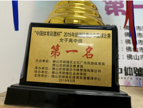 2019年“中国体育彩票”顺德区青少年篮球比赛女子高中组第一名;