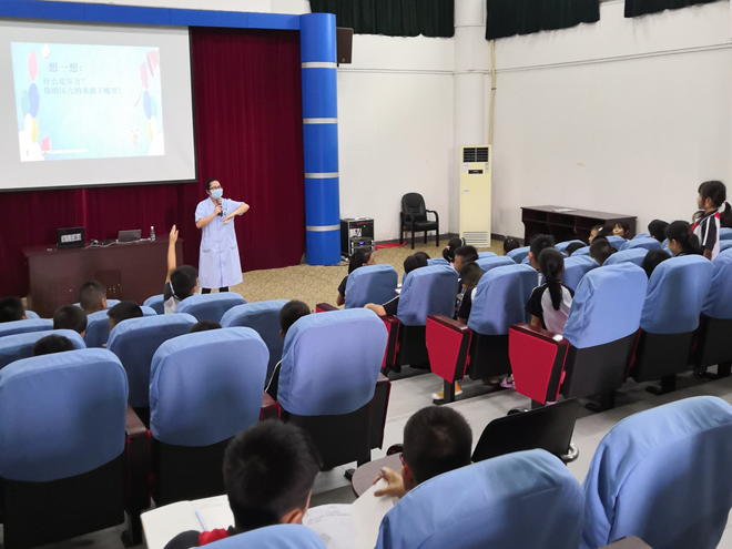 为促进学生人格健全发展,培养乐观、积极向上的心理品质,针对学生心理压力,我校于6月30日下午,邀请龙江社区卫生服务中心谭好欣医生为我校三年级孩子们开展“从压力中营救自己”的心理健康教育活动。