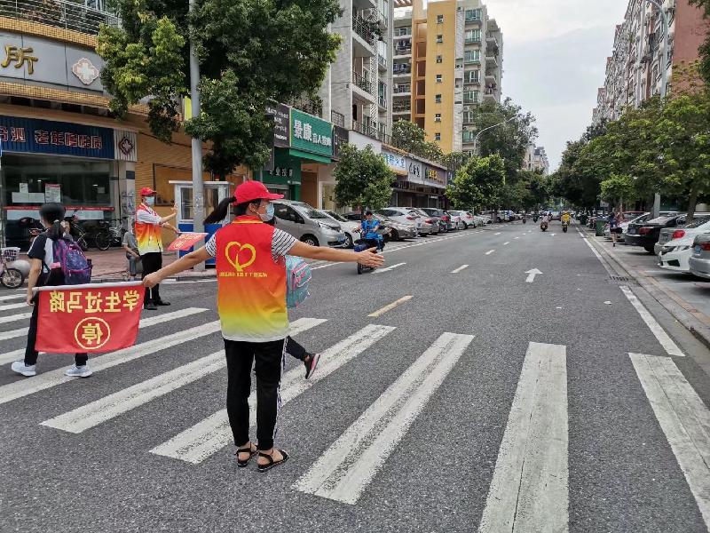 时值2017年9月,杨润懿老师组织成立了学校的服务队,他是我的班主任和语文老师,在他的“鼓动”下,妈妈就加入了服务队。现在我已经读初中了,当妈妈知道容桂小学成立志愿者服务队时,又成为了服务队的一员。