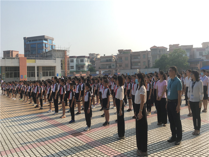 由于场地范围有限,但是同学们参加典礼的热情无限。只见同学们一个个扬着笑脸,有序地到指定地点站好,静待典礼开始,整个会场寂静安然,秩序良好。典礼由麦国才主任主持,首先是升旗仪式,五星红旗冉冉升起,整齐的队礼,庄严的仪式,传达出全体师生对祖国的尊重与热爱!典礼在庄严的国歌声中拉开了序幕。