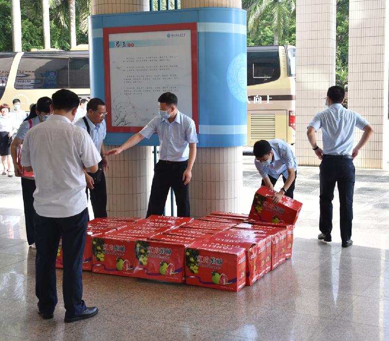 感谢梅州东山中学梅县新城分校给均安中学老师带来当地特产