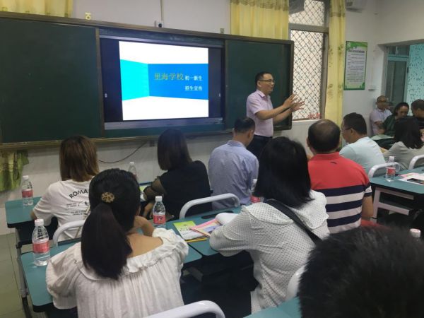 六月,繁花似锦,风和日丽。龙江里海学区初中招生工作已启动。为更全面地进行学校宣传,使里海学区内各小学六年级毕业生和家长更充分地了解里海学校的办学情况,6月17日起,我校李金龙校长、欧阳帆校长助理、教务处梁月芬主任和李健聪主任就开始马不停蹄在里海学校小学部、官田小学、东海小学和左滩小学就七年级招生事宜与家长和学生进行面对面沟通交流。