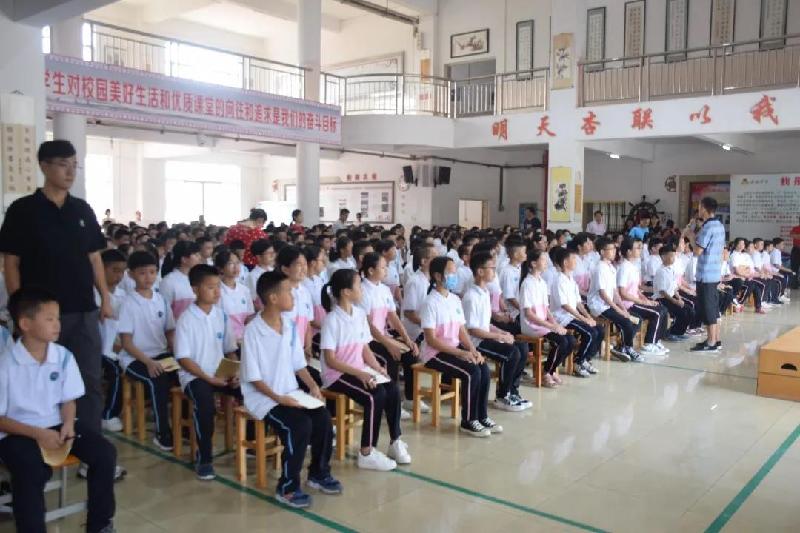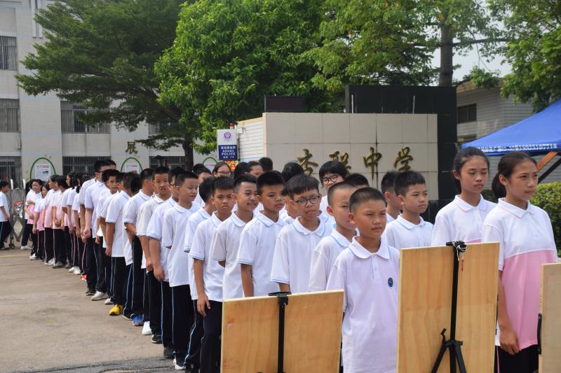 为进一步提高中小学生的交通安全意识和自我防范能力,从源头上减少和预防交通事故的发生,在年级的安排下,初一级各班整齐有序地来到学校正门,学习相关交通安全知识。