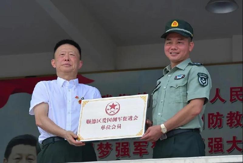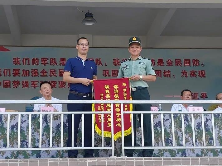随后,分别举行了“顺德区青少年国防教育基地”挂牌仪式和“顺德区爱国拥军促进会单位会员”授牌仪式。杏联中学李华长副校长和佛山市青少年军校校长李志强互赠纪念品和锦旗。