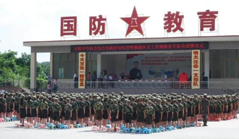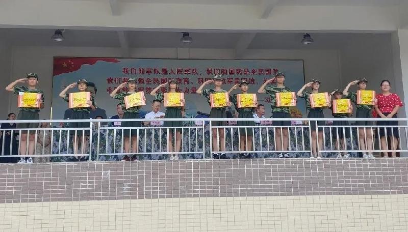 9月11日上午9:30分,在5天艰苦的训练后,杏联中学初一新生社会综合实践活动结营展演暨“顺德区青少年国防教育基地”挂牌仪式和“顺德区爱国拥军促进会单位会员”授牌仪式正式开始。