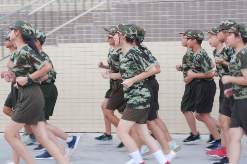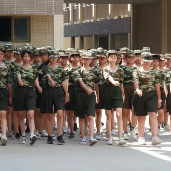 开营结束后,杏联中学全体参加实践活动的新生迎着9月的骄阳,立即投入到了紧张的训练中。酷日下,一张张稚嫩的脸庞上洋溢着朝气,明亮的眼神里流露出坚毅。