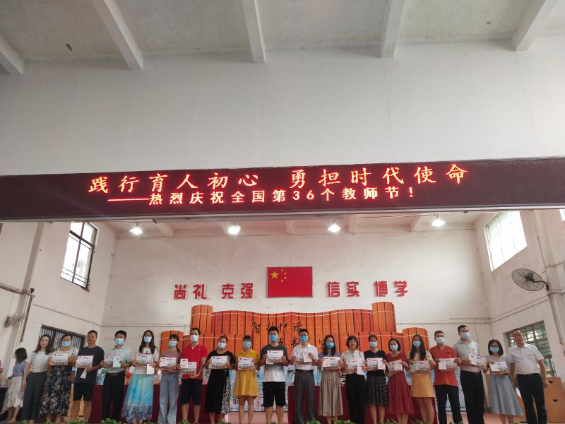 学校的成绩离不开在各自的岗位上辛勤耕耘、爱岗敬业、无私奉献、为芳中的发展和学生的成长成才做出不懈努力和贡献的优秀教职工。9月10日下午我校师生在礼堂召开庆祝教师节暨优秀教师表彰大会。会议由校团委书记卢丽红书记、何笑锋主任主持。校领导为我校本年度荣获“梁琚集团立德树人优秀教师”、“最美教师“等荣誉称号的老师颁发了荣誉证书和奖品。荣誉浸透着教师的汗水,表彰见证着教职工的付出。