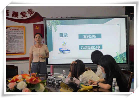 随后,新教师回到会议室,认真聆听由刘娅玲老师主讲的班主任培训讲座。刘老师以教育案例为切入点,分享自己的教学经验,指导新教师要遵循“不责备原则”,运用“同理心”建立“家校联盟”,逐渐成长为一位成长型的班主任。
