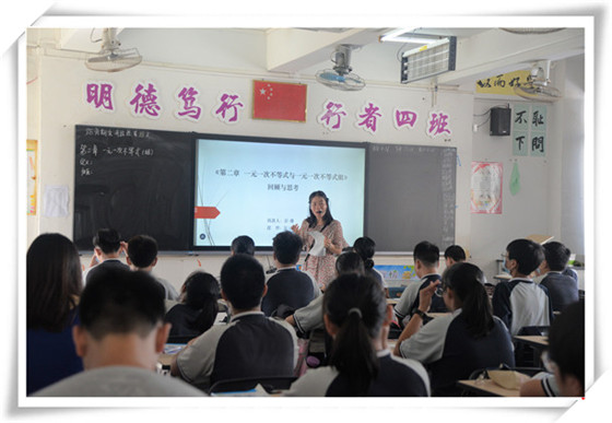 大课间过后,新教师分批进入初中课堂,分别观摩彭珊老师的数学课和练兆霖老师的英语课。真实的课堂情境帮助新教师进一步了解初中学情。