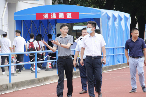 2020年7月2日,顺德区委副书记、政法委书记王勇,区委办常务副主任杜友华,顺德区教育局局长闵乐萍一行3人莅临罗定邦中学,对2020年高考考点防疫工作开展专项督查,我校校长熊文华带领学校行政陪同检查。