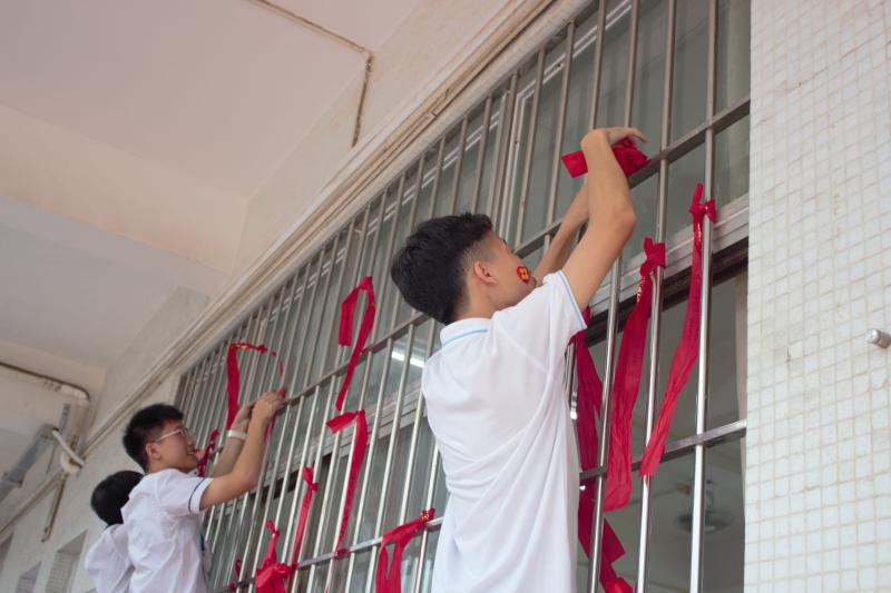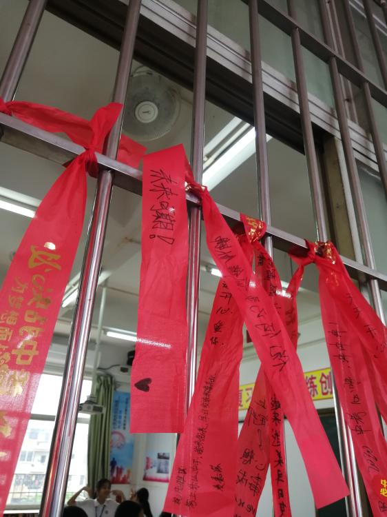 君中是一个很有爱的大家庭,奋斗的路上,星空体育从来都不会寂寞。同学们在红丝带上写上对自己最想鼓励的一位同学的祝福并亲手送给对方,收到祝福的同学把红丝带系到走廊窗户上。慢慢地,初三级的走廊就变成红色的海洋,微风不时吹过,撩动的是少年的心……放眼望去,还发现年级走廊的移动黑板展示着2019届君兰中学卓越班送给2020届君兰初三学子的祝福――《奔涌吧,后浪!》!