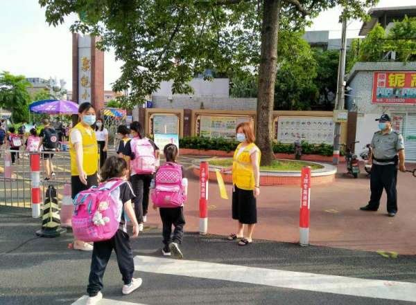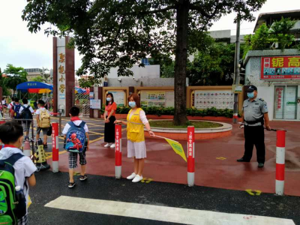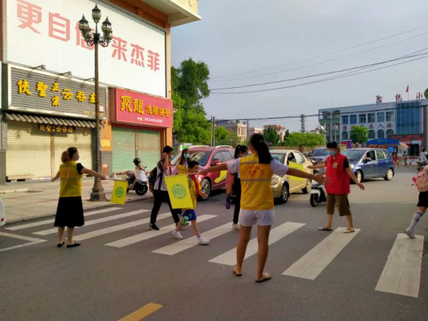 有一种守护叫风雨无阻,有一种大爱叫默默坚守。自家长志愿者服务队成立以来,家长志愿者们每日出现在学校门口,身穿红色马甲,手拿黄色旗帜,形成了一道靓丽的风景。家长志愿者们在校园门口、交通路口等要处疏导交通,维护交通秩序,为孩子们开辟“绿色通行道”,协助值日老师、民警同志减轻道路通行压力,保护孩子安全上学。