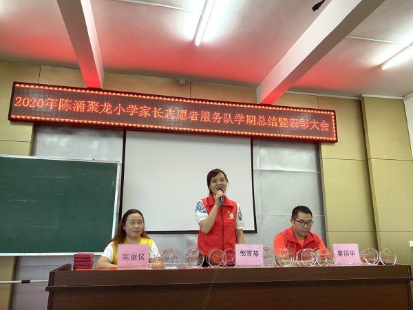 2020年7月10日下午,召开“遇见最美志愿者”---陈涌聚龙小学志愿服务队学期总结暨表彰大会,总结本学期的志愿服务工作,表彰一批优秀敬业的家长志愿者,并庆祝聚龙小学志愿服务队成立两周年,志愿服务队队注册成功一周年,邹雪琴校长、学校行政及护学岗家长志愿者参加了本次活动。