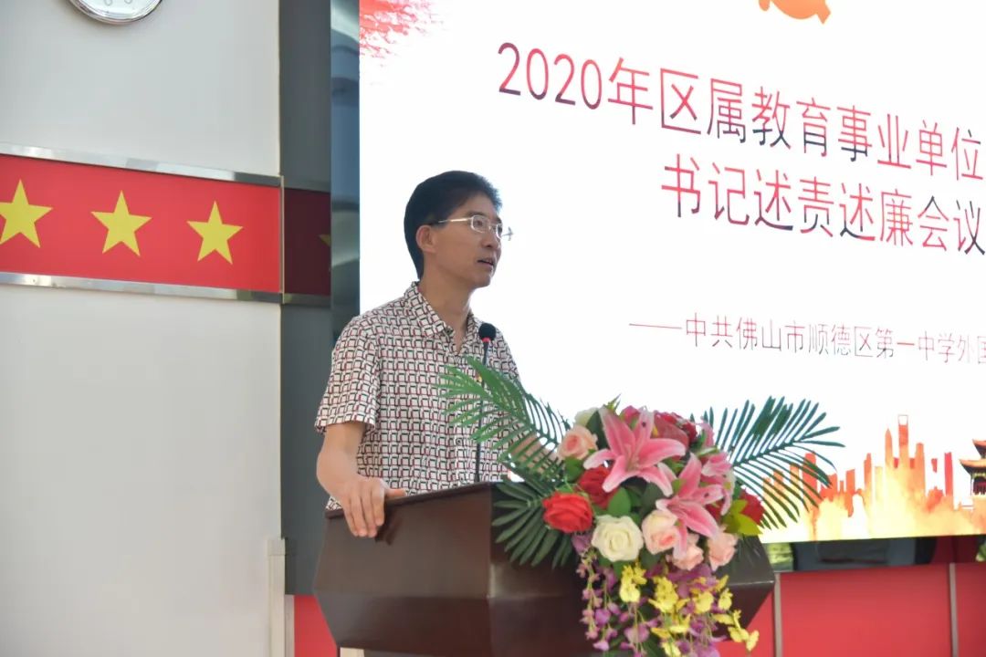 7月15日,顺德一中外国语学校召开2019年学校党总支书记述责述廉工作会议。