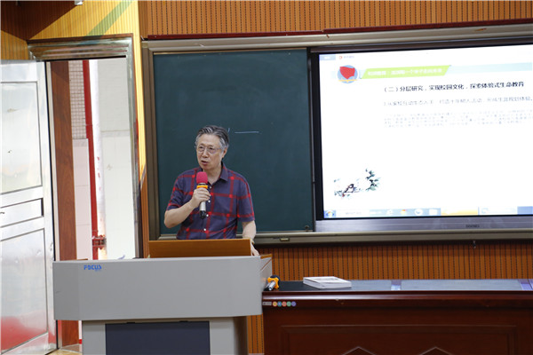 最后,与会人员移步到报告厅,进入本次活动最高潮最激动的专家论证环节。熊少严教授充分肯定了学校“和润教育”的理念和办学特色,他认为,学校从物化的教育生态,到人本化的课程活动,都关注着学生核心素养的发展,尤其是在学生成长体验教育方面,做了大量的工作,结了丰硕的成果。朱则平教授也大力赞赏成果报告内容丰富,研究过程和措施具体得当,方法多样,硕果累累,科研对学校发展、师生发展都具有很大的促进作用。同时,两位教授也对成果报告中的图文字句、结构逻辑等提出了严谨、科学的宝贵意见,对“和润教育”今后的深化和提升提出了建议和希望。